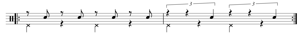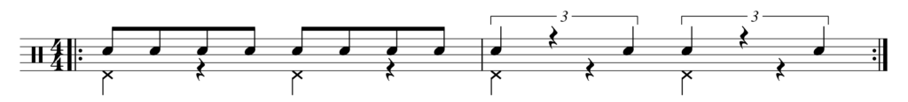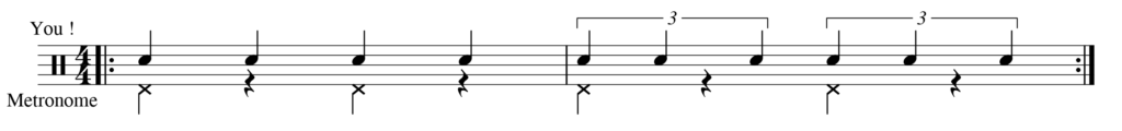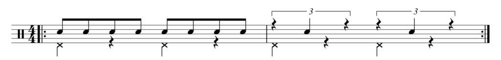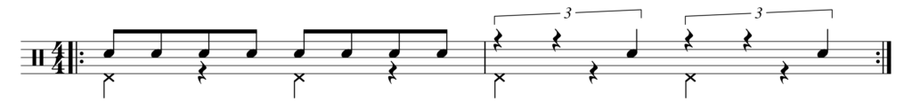 前回やった3連符とイーブンを組み合わせてやってみよう。