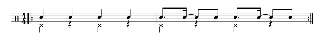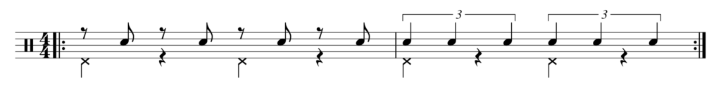 この2つを明確に区別することは、リズムを正確に掌握するためのヒントにもなる。試しに次のようにこの2つで往復してトレーニングするのも面白いかもしれない。