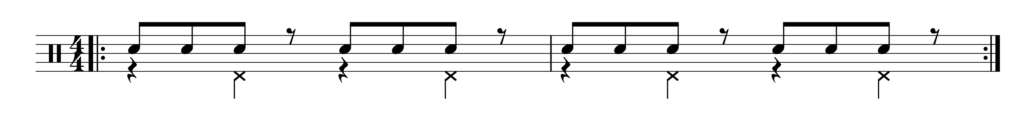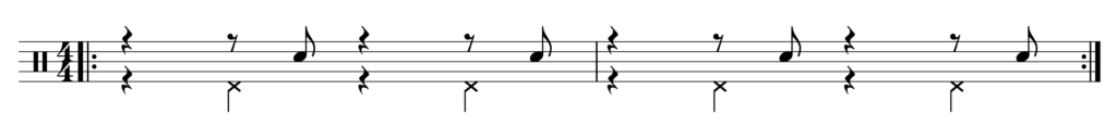 裏のメトロノームに合わせて、色々なテンポでこのスカスカなExerciseが違和感なく出来るようになれば、あなたのパルス構築力は相当なレベルになっている。