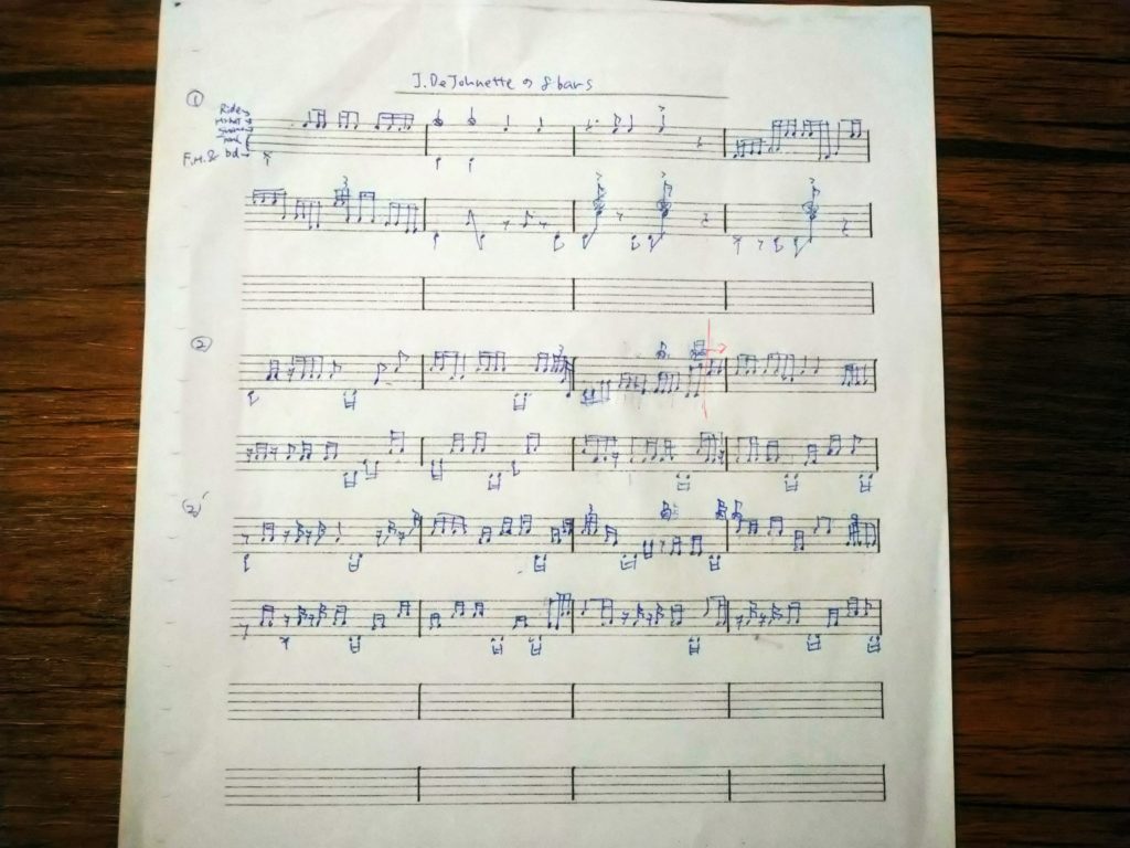 ちなみに一つ種明かしをすると、今回のドラムソロは、Jack Dejohnetteという世界的に有名なジャズドラマーのフレージングを参考にしています。いったん彼の演奏を譜面に起こしたのがこちら。