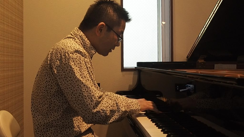 しかし、まあ特に映像の方では色々と今回もやらかしてまして、作品を作るたびに反省点が多々発生します。例えば今回メインカメラとして取った横からの映像、後から見てみたら全体的になんかまっ黄色な画像になってまして。。。確かにうちのピアノ室の照明は暖色系ではあるのですが、明らかに不自然な映像。カメラの持ち主(うちの妻)に後から聞いたら、ホワイトバランス設定が屋外撮影用になっていたとことが分かりました。