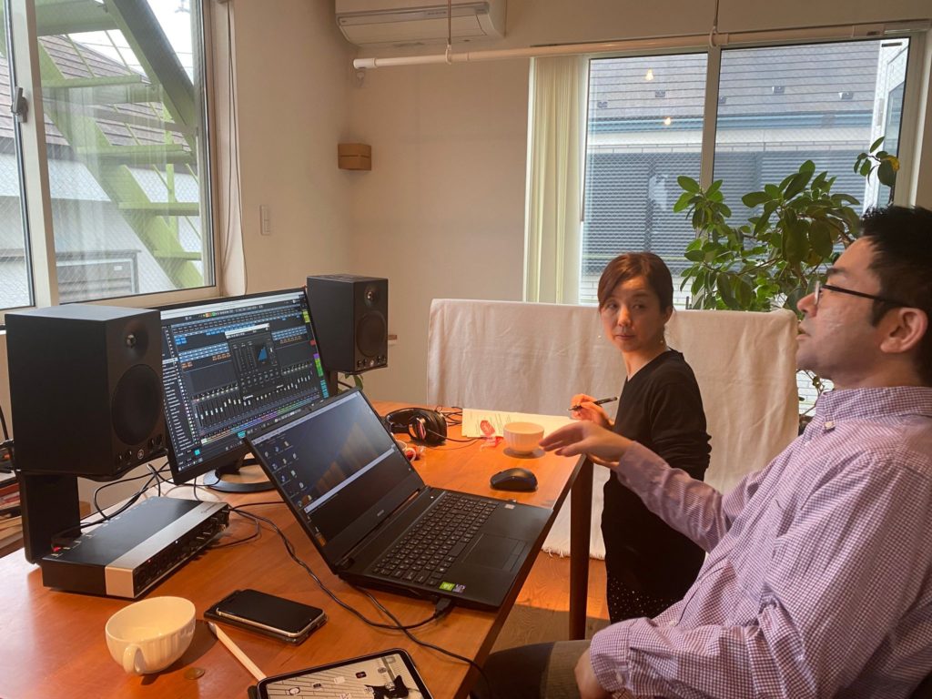 今回はまりーなさんに自宅へ来ていただき、白壁慶子と3人で実際に音を聴きながらミキシング大会をやりました。
